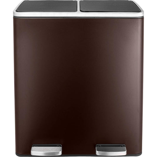 Arlopu Dual Step Trash Can, 16 Gallon (2×30L) Stainless Steel Garbage Can with 2 Soft-Close Lid and 2 Removable Inner Wastebasket