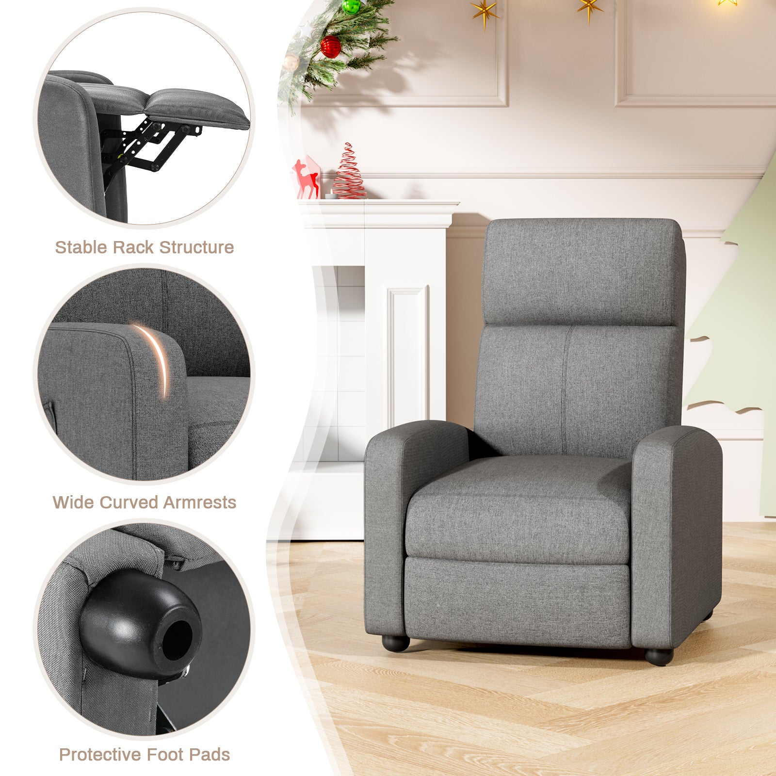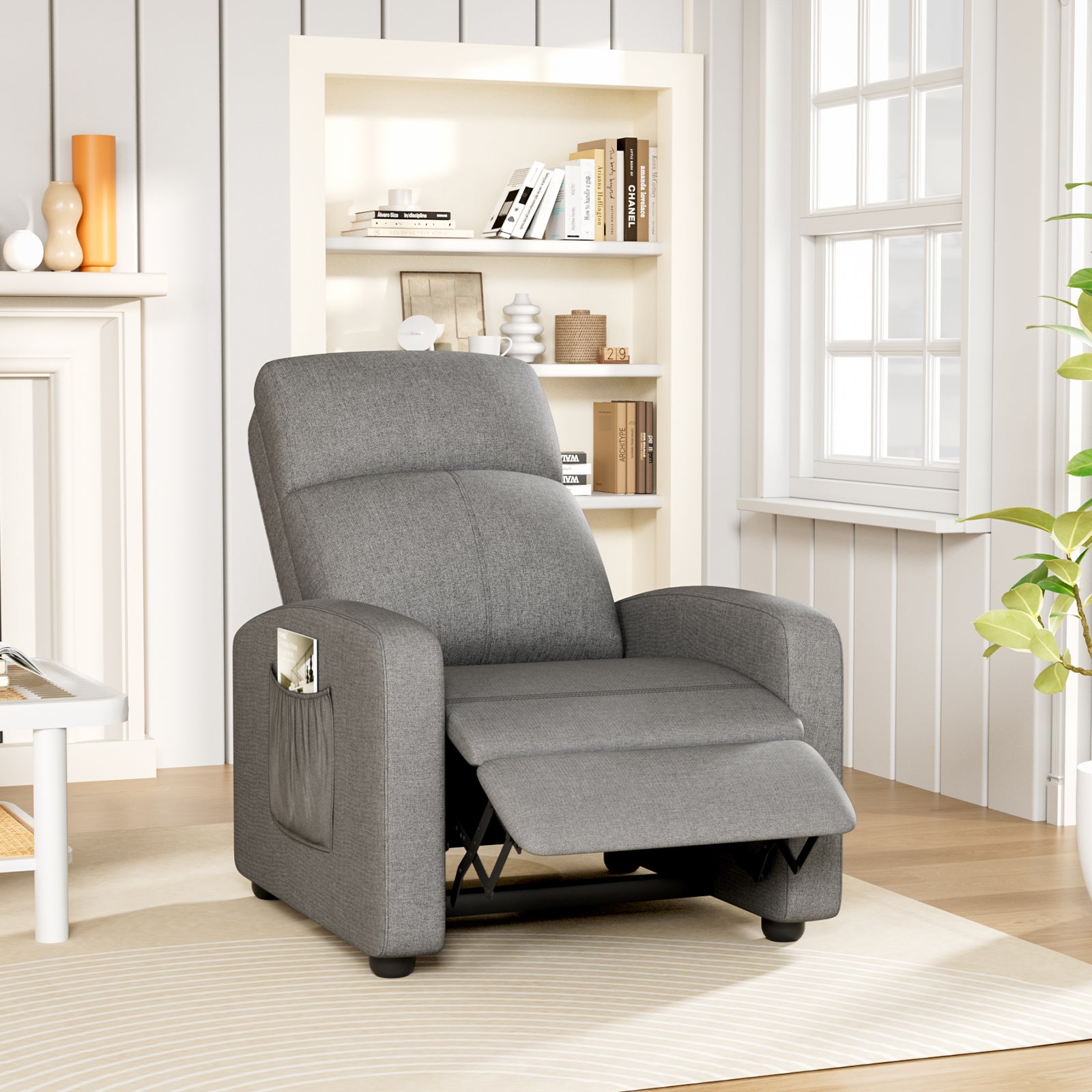 Arlopu Fabric Recliner Chair, Single Reclining Chair Home Theater Seating with Side Pocket, Adjustable Backrest and Footrest, Ergonomic Lounge Chair for Living Room