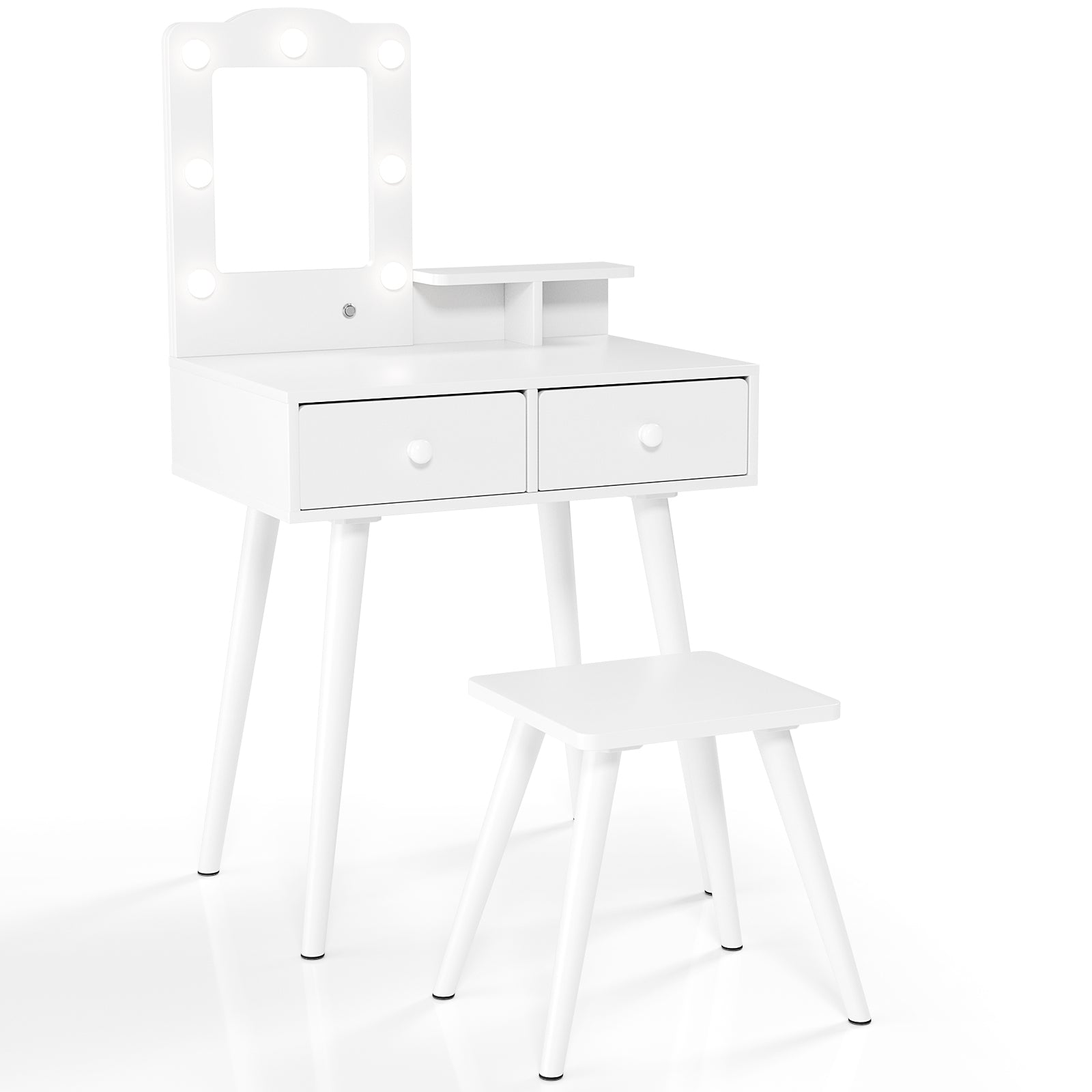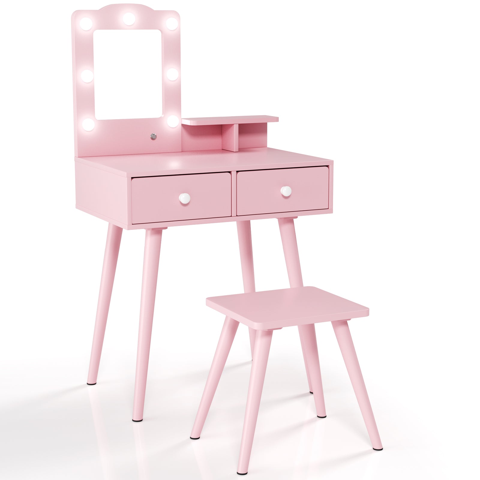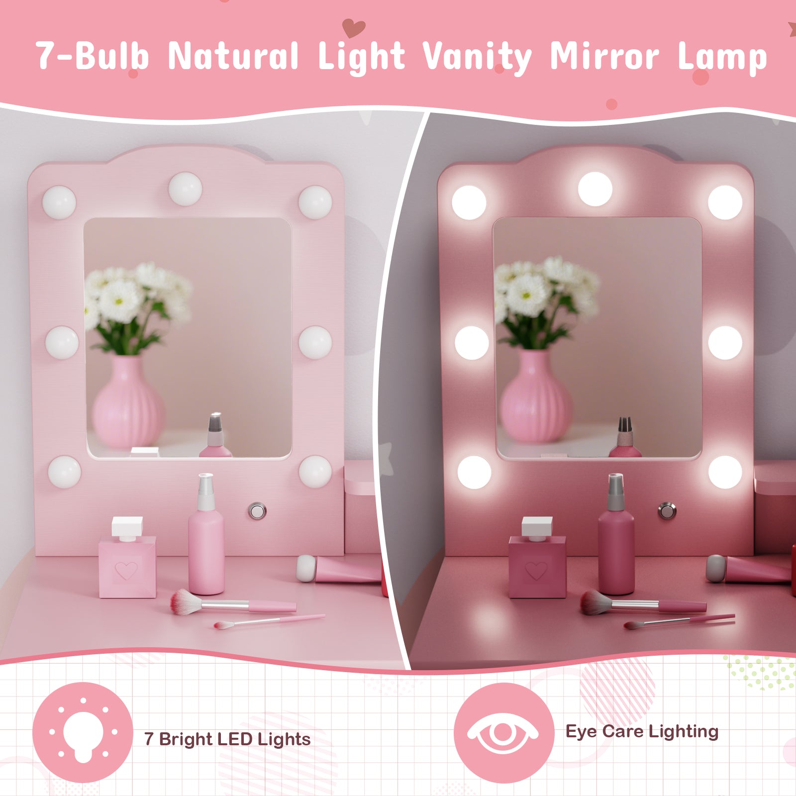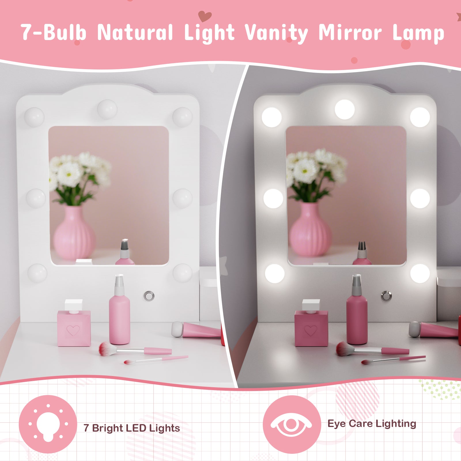 Arlopu Kids Vanity Table and Chair Set, Wooden Makeup Playset with Mirror & Lights, Ideal Princess Gift for Girls